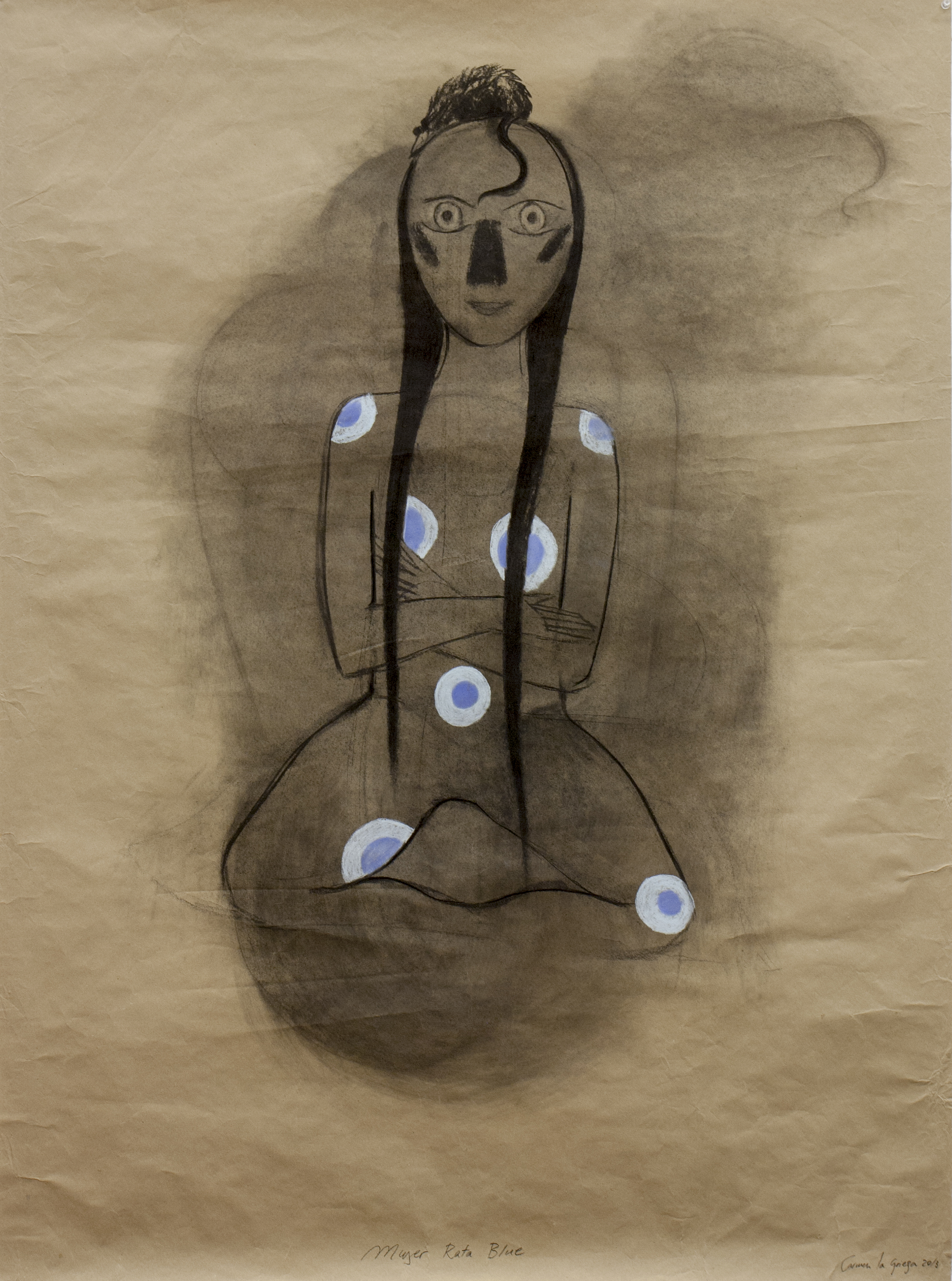 Carmen La Griega. Mujer rata I (blue). 2013. Carbón y pastel s. papel de estraza. 141×104 cm